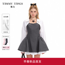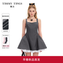 糖力商场同款 俏皮少女蓬蓬裙 2026春季新款方领无袖连衣裙女显瘦 灰色 挺括梭织斜纹料 X型蓬蓬裙摆 XS 建议80-90斤