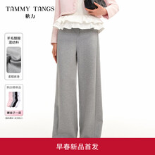 糖力商场同款 奶霜直筒阔腿长裤 2026春新款撞色软糯针织休闲裤女 花色 花灰色 含羊毛醋酸混纺针织料 柔糯爽滑 S 建议85-105斤