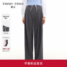 糖力商场同款 高智松弛西装长裤 2026春新款撞色直筒阔腿休闲裤女 灰色 撞色松紧腰头 收腰直筒阔腿廓形 XS 建议80-90斤
