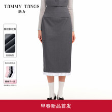 糖力商场同款 高智西装铅笔裙 2026春新款高腰显瘦中长款半身裙女 灰色 挺括梭织斜纹料 拼接撞色荷叶边 XS 建议80-90斤