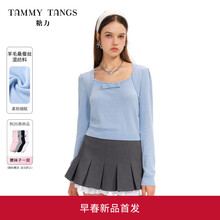 糖力商场同款 海盐毛衫 2026春季新款莱赛尔混纺套头针织衫上衣女 蓝色 含莱赛尔羊毛桑蚕丝混纺料 S 建议85-105斤