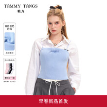 糖力商场同款 外搭坎肩衬衣 2026春季新款白色长袖短款衬衫上衣女 米白色 顺滑纯棉料 坎肩设计 前短后长 S 建议85-105斤
