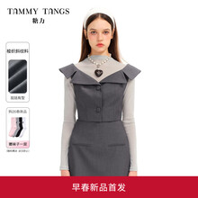 糖力商场同款 2026春季新款灰色高智感大翻边领马夹上衣女短款显瘦 灰色 挺括梭织斜纹料 大翻边领型 S 建议85-100斤
