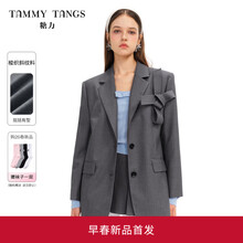 糖力商场同款 2026春季新款高智感蝴蝶结宽肩廓形西装外套女中长款 灰色 光滑细腻斜纹梭织料 宽肩廓形 S 建议85-105斤