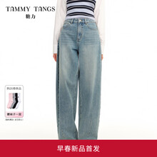 糖力商场同款 玛德琳丹宁长裤 2026春季新款遮胯弯刀阔腿牛仔裤女 浅蓝色 浅牛仔 L